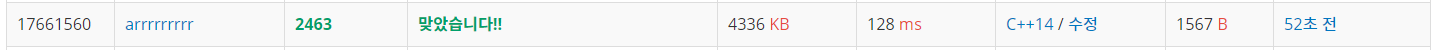 1602 - 도망자 원숭이 (0) 2020.02.14 파티 - 1238 (0) 2020.02.13 학교 가지마! - 1420 (0) 2020.02.12 축사 배정 - 2188 (0) 2020.02.11 효율적인 해킹 - 1325 (0) 2020.02.11